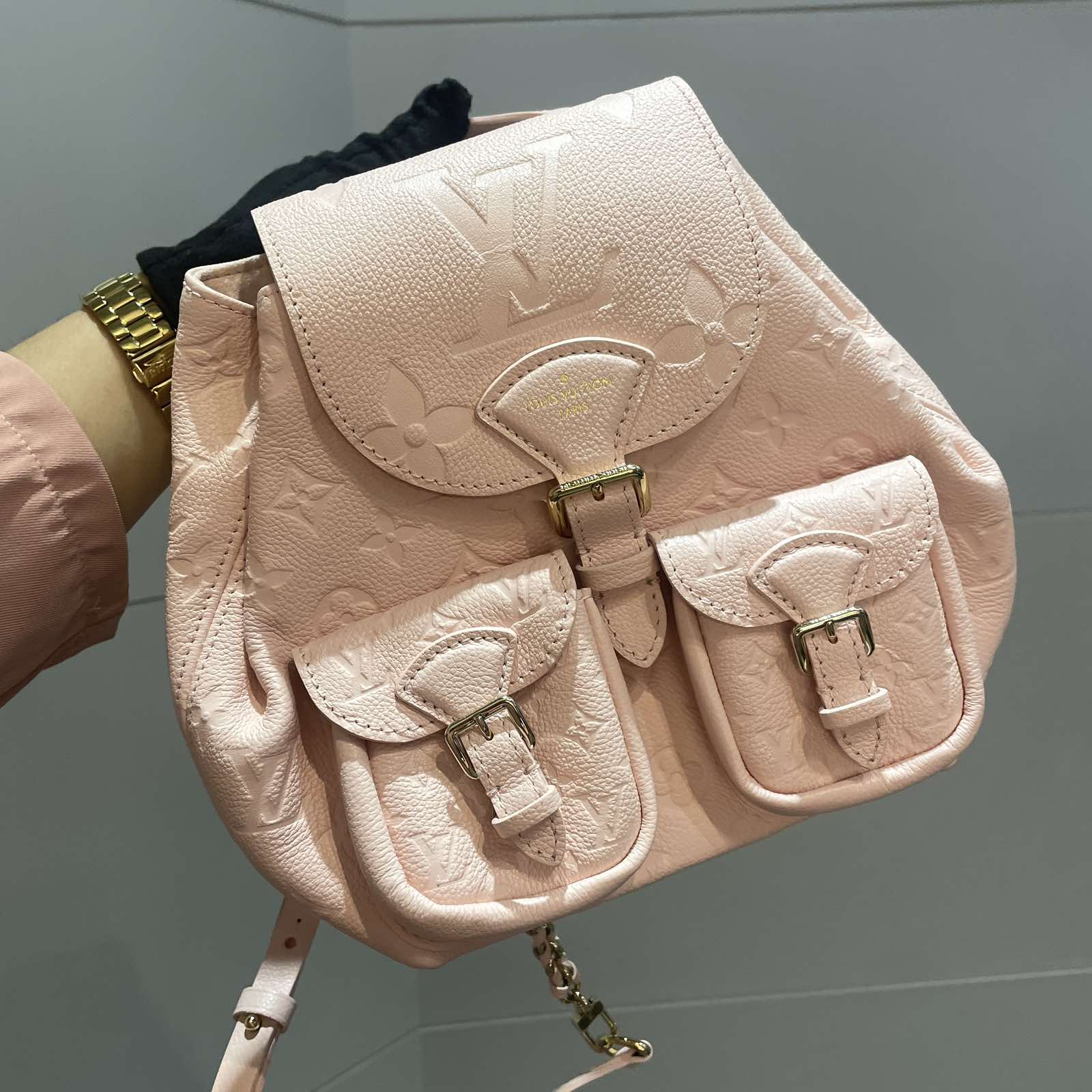 Crafted in a delicate blush pink, this mini backpack brings a fresh twist to classic Louis Vuitton aesthetics. With embossed Monogram details and polished buckle accents, it’s a piece that exudes sophistication while keeping things light and youthful.