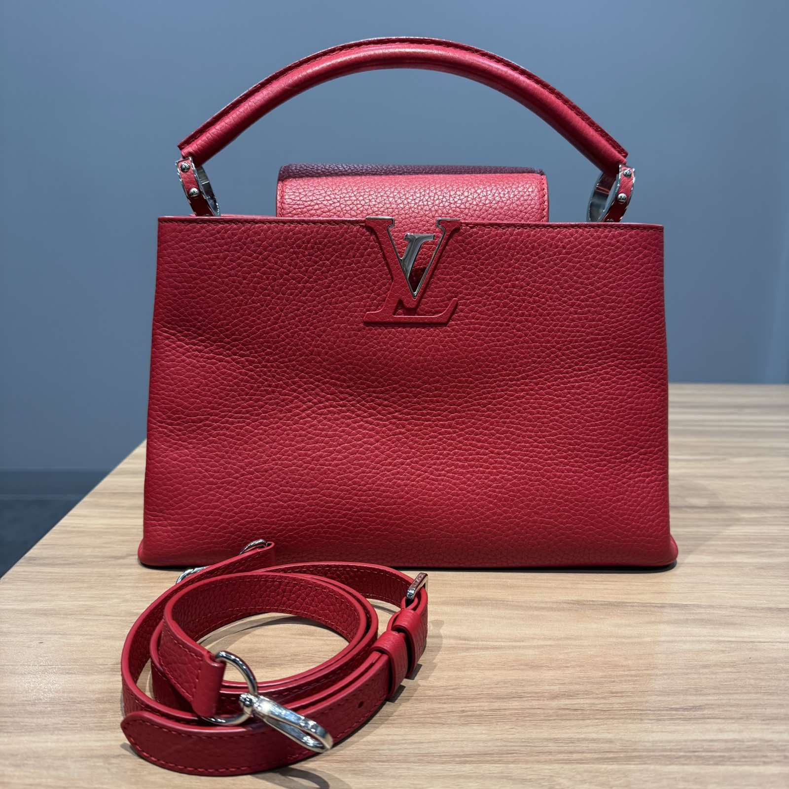 We are excited to announce the acquisition of the LOUIS VUITTON TAURILLON CAPUCINE RED 2 WAY MM bag. Here are three reasons why this bag is highly popular:
